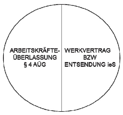 “ erbracht werden. Der Vertrag zwischen Dienstleistungserbringer und Dienstleistungsempfänger kann somit ein Werkvertrag sein und die gegenseitigen Rechte und Pflichten zwischen den beiden Vertragspartnern dieses Vertrags richten sich grundsätzlich nach den Rechtsvorschriften für Werkverträge. Soweit jedoch in Erfüllung dieser Werkverträge Arbeitskräfte zum Einsatz kommen, richten sich deren Rechte und Pflichten nach dem AÜG. Eine ungewöhnliche Konstruktion, die jedoch sozialpolitisch von hoher Relevanz sind, wie sich am Beispiel der sozialen Verwerfungen in Deutschland vor einigen Jahren unter dem Stichwort „Werkvertragler“ gezeigt hat.37