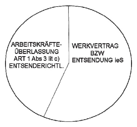 „Dienstleistungsentsendung“: Eine Entsendung im Rahmen eines Vertrages, der zwischen dem entsendenden Unternehmen und dem in dem im Empfangsstaat tätigen Dienstleistungsempfängers geschlossen wurde. Diese Form der Entsendung wird im Folgenden als Entsendung ieS bezeichnet. Die rechtliche Grundlage für den Einsatz des AN wird in der Regel ein Werkvertrag sein.