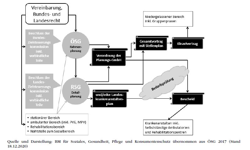 Das österreichische Gesundheitswesen ist durch eine hohe Zersplitterung der Zuständigkeiten geprägt. Durch mehrere Gesundheitsreformen wurde versucht, eine zentrale Planung und Steuerung einzurichten. Diese ist allerdings äußerst komplex, nur zT verbindlich und mit gravierenden verfassungsrechtlichen Bedenken konfrontiert. Besondere Schwierigkeiten ergeben sich bei der Abstimmung mit der Stellenplanung des Vertragspartnerrechts. Der folgende Beitrag geht auf einige grundlegende Steuerungsfragen ein, insb auf das Verhältnis zum Vertragspartnerrecht.